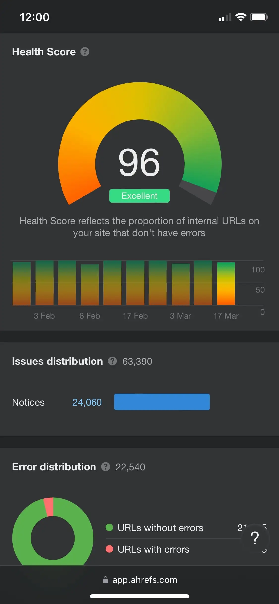 Basierend auf internen SEO-Daten tracken wir deine Performance und den Gesundheits-Zustand deiner gesamten Seite.